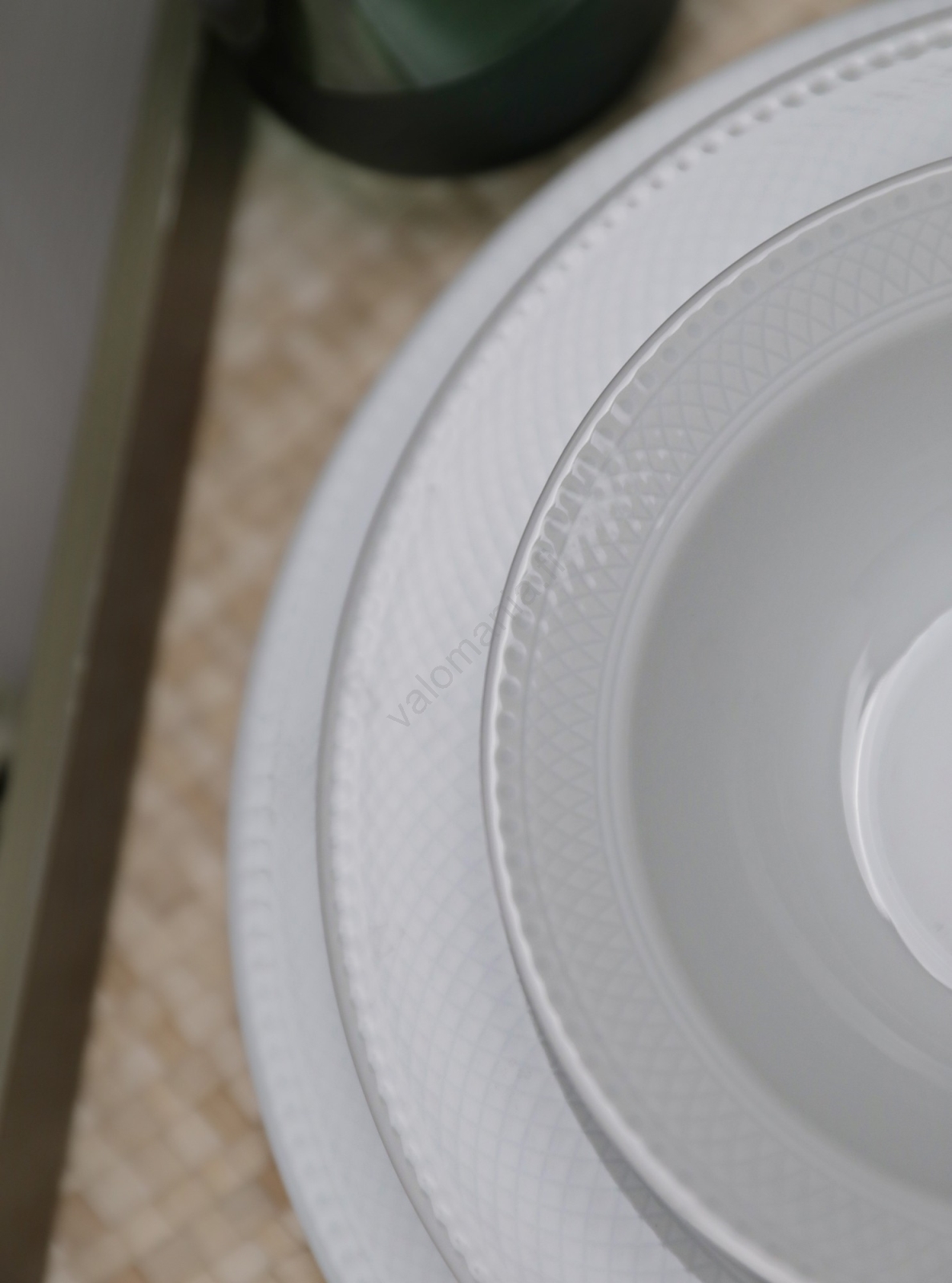 • Valmistettu 100 % posliinista (koostumus: kaoliini, kvarts, maasälpä), mikä takaa korkean kulutuskestävyyden ja pitkän käyttöiän.