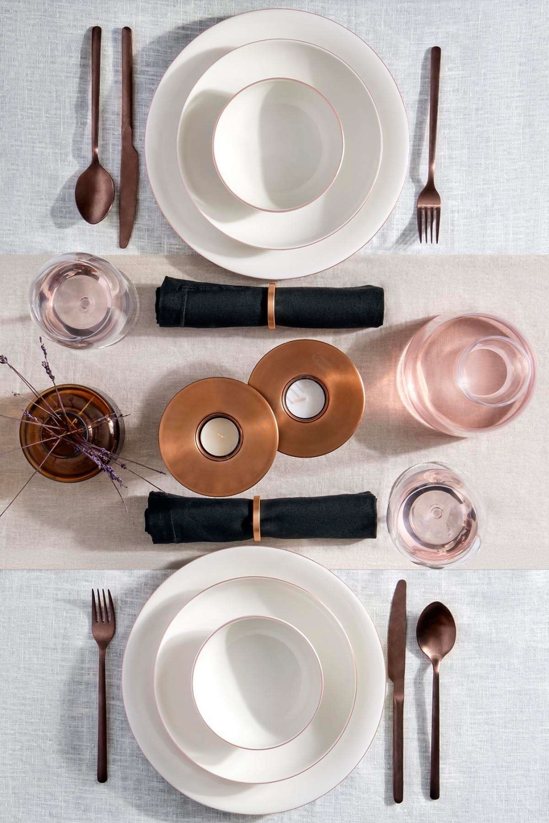 18-osainen ruokailusetti, valkoinen/kupari/posliini | Valomania