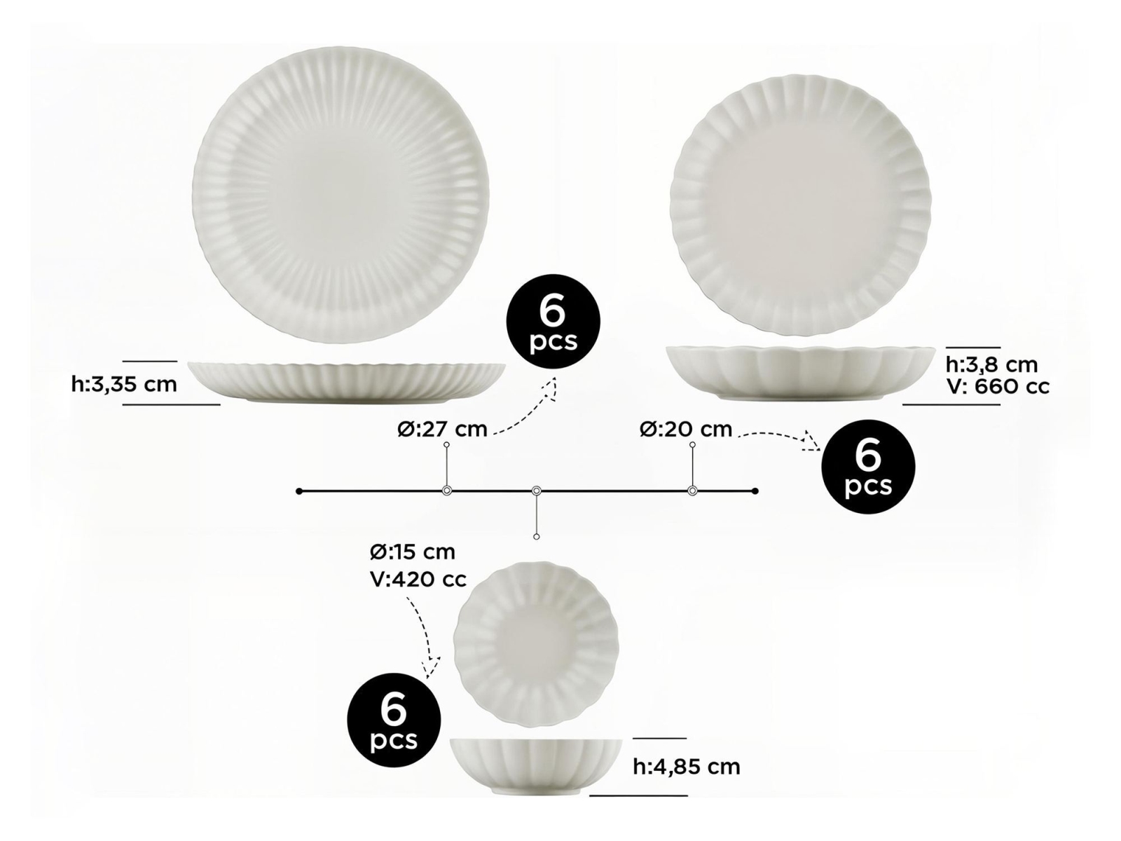 • Kulho: 15 cm (6 kpl).
