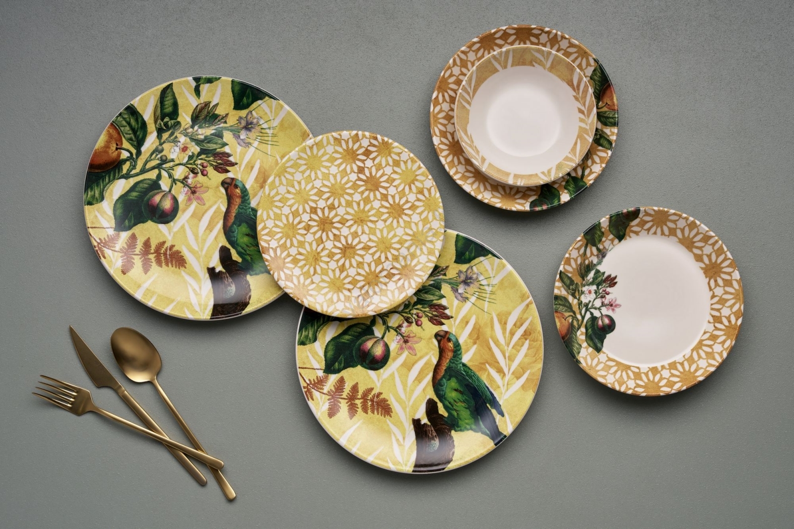 24-osainen astiasarja, keltainen/vihreä/valkoinen, keramiikka | Valomania