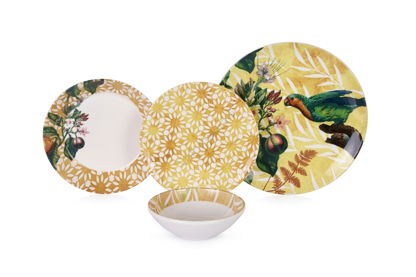 24-osainen astiasarja, keltainen/vihreä/valkoinen, keramiikka