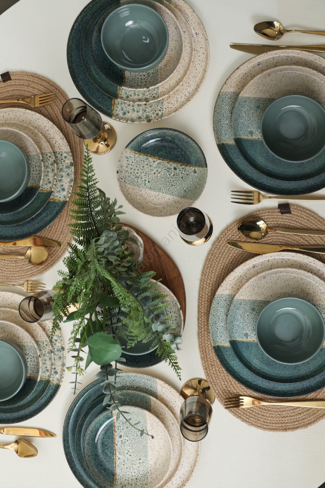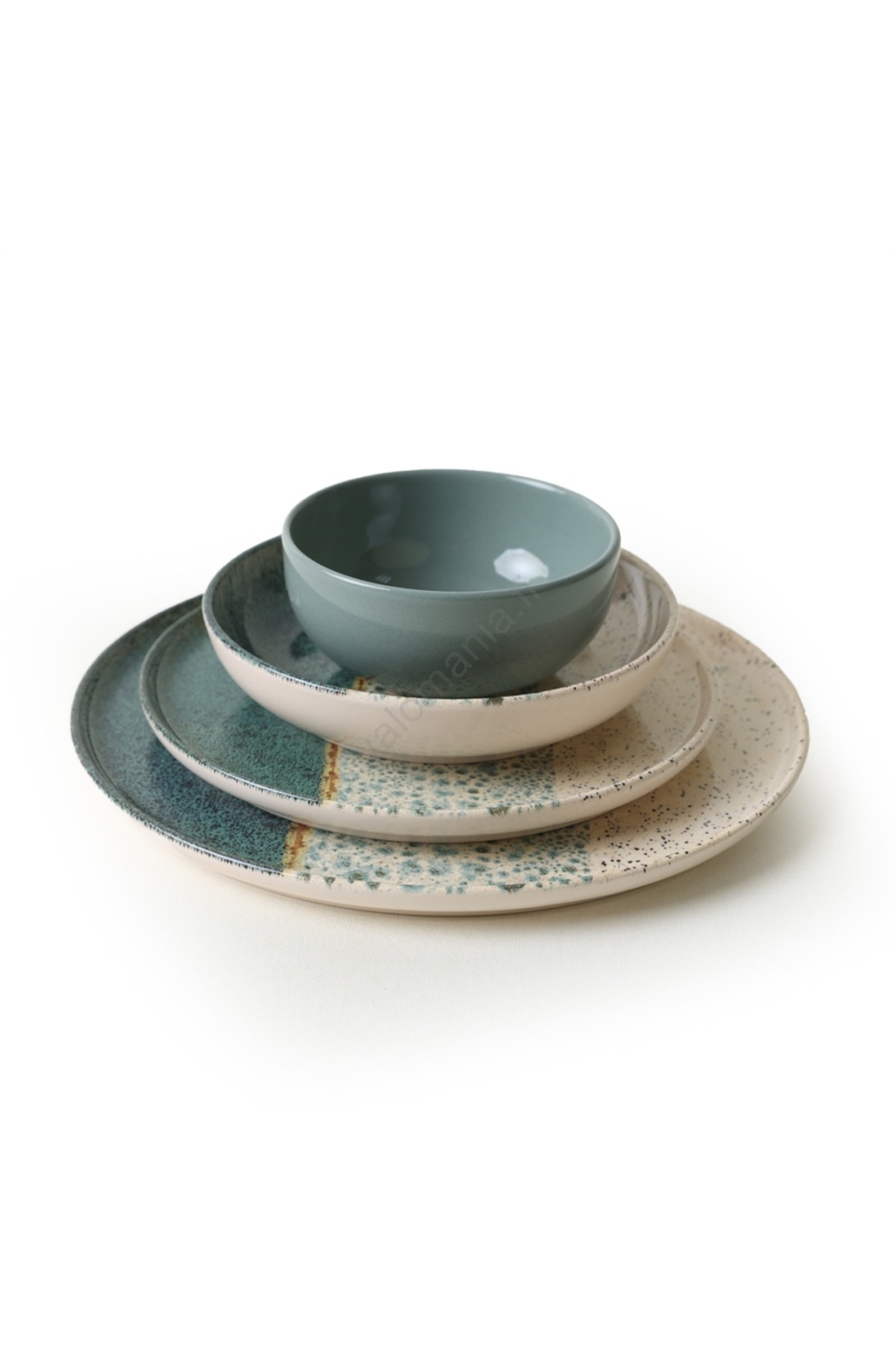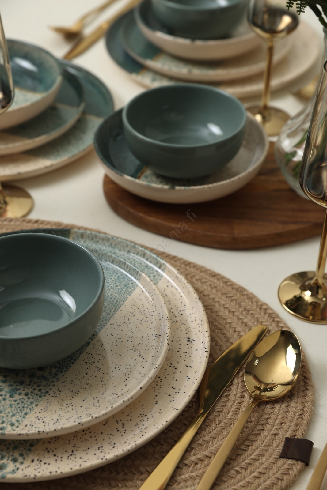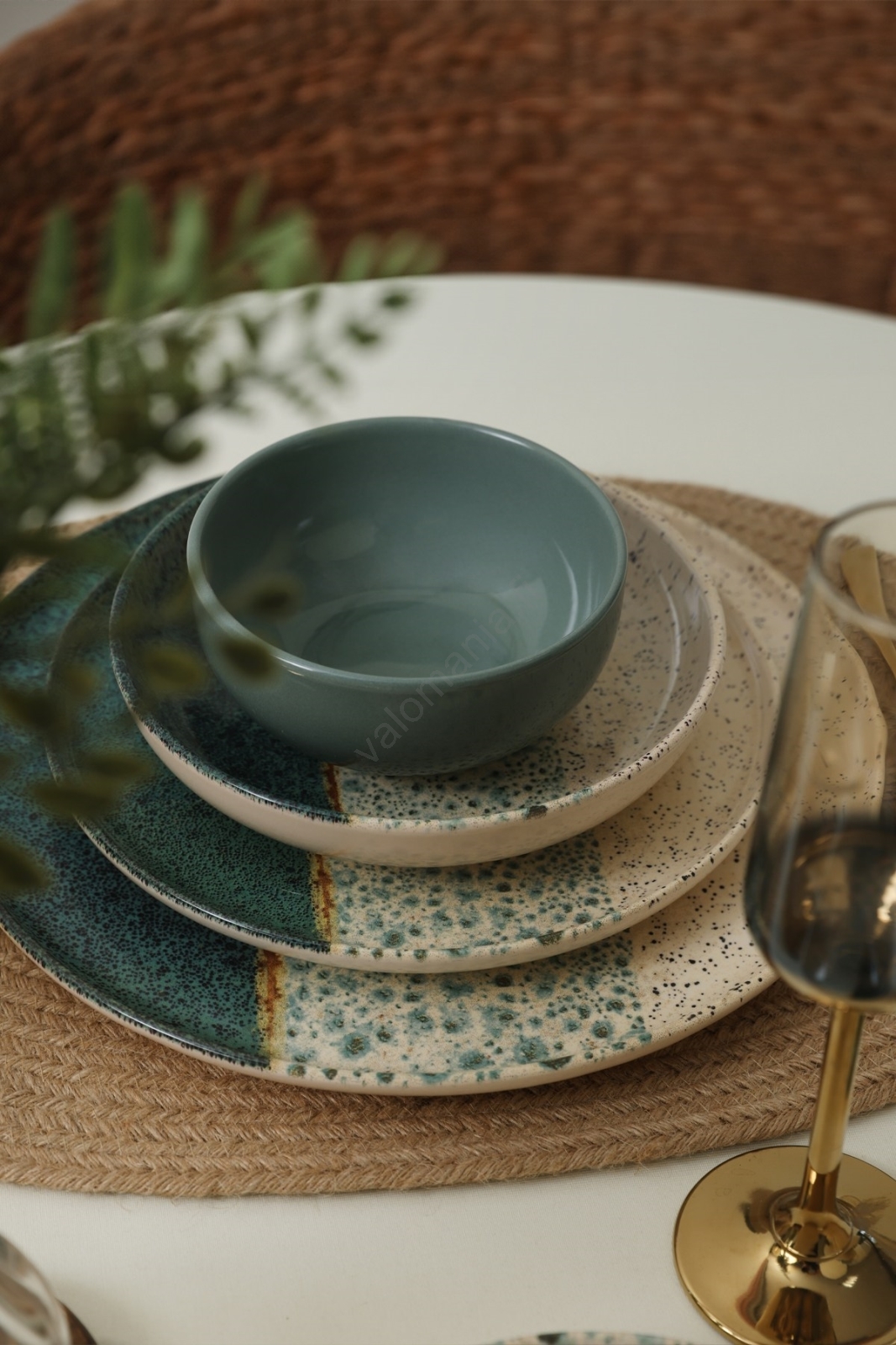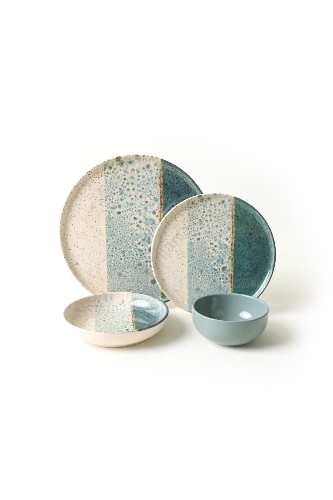 24-osainen astiasto, turkoosi/kerma/kivitavara | Valomania