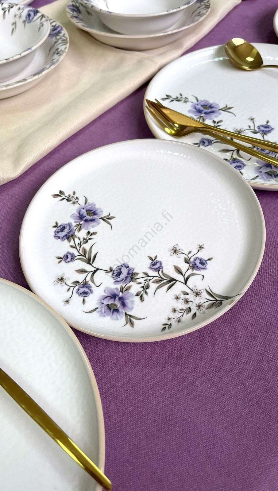 24-osainen keramiikka-astiasto, valkoinen/violetti