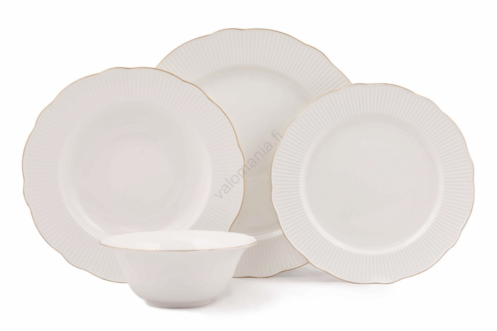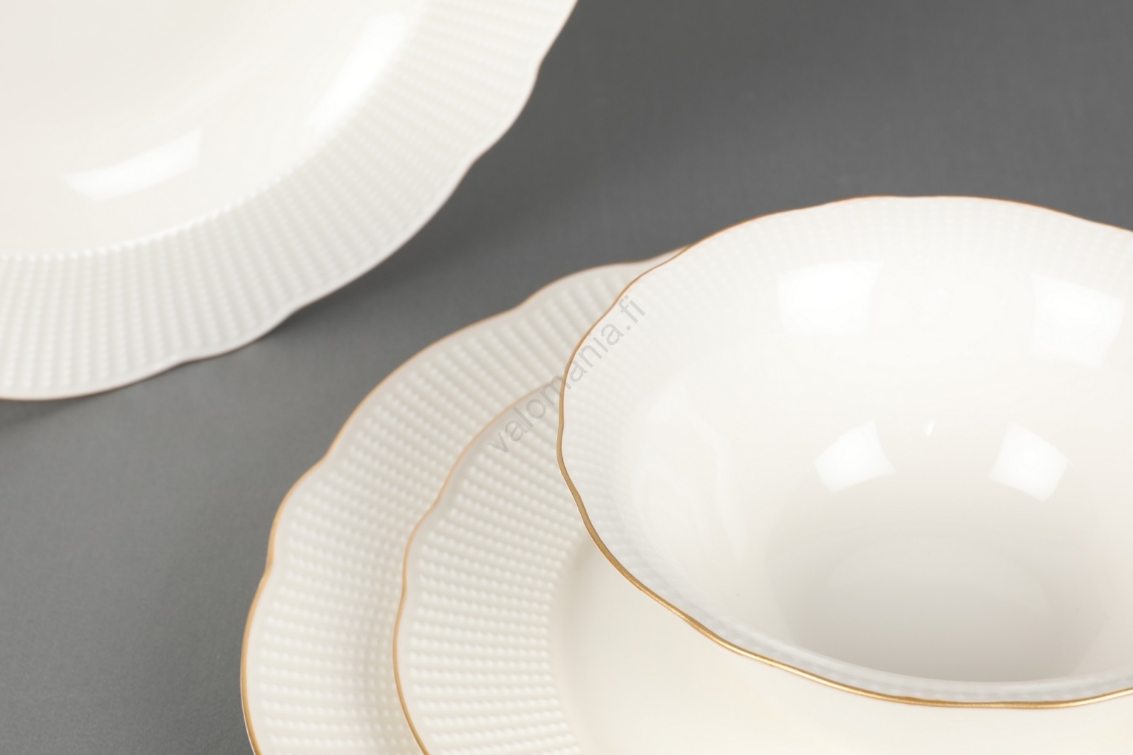 24-osainen posliininen ruokailusarja, valkoinen/kultareunus | Valomania
