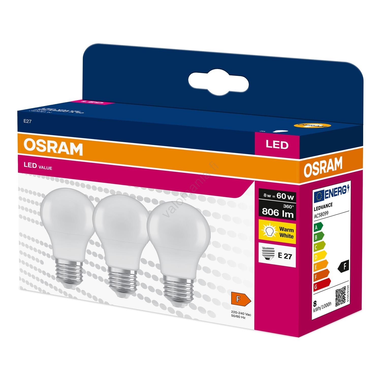 3 kpl LED-lamppu A60 E27/8W/230V 3000K - Osram Laadukas muotoilu takaa täydellisen valaistuksen sisätiloissasi. Luokka E27 on omistettu polttimoille, joissa on sama kanta. Verkkokaupastamme voit valita joko perinteisistä hehkulampuista tai moderneista LED-polttimoista, jotka ovat energiatehokkaampia ja pitkäikäisempiä.