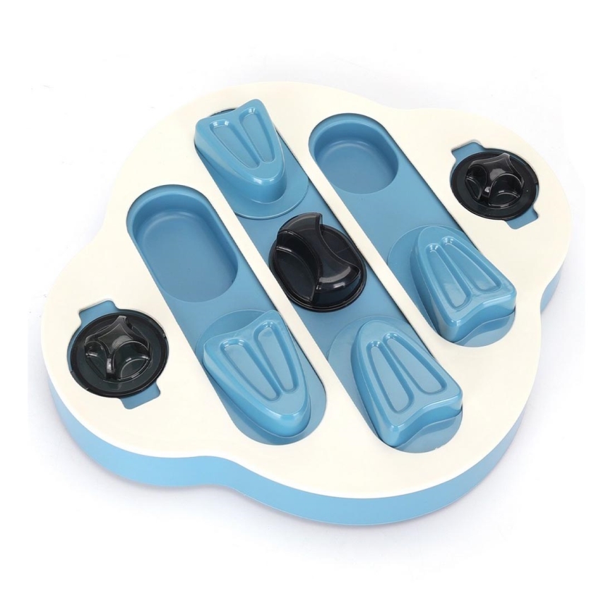 • Leikkikalu sisältää nostettavia, kääntyviä ja liukuvia lokeroita, joihin voit laittaa koiran keksejä tai herkkuja koirallesi.