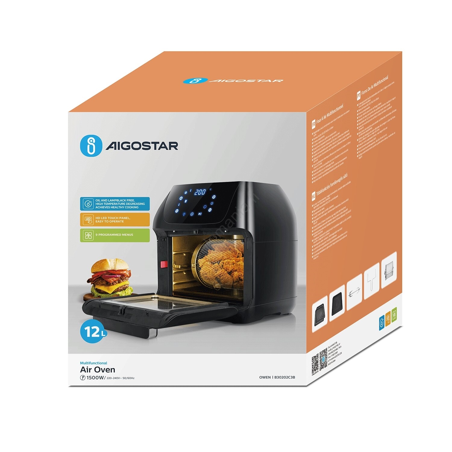 Aigostar kuumailmauuni 1400W/230V 12l musta | Valomania