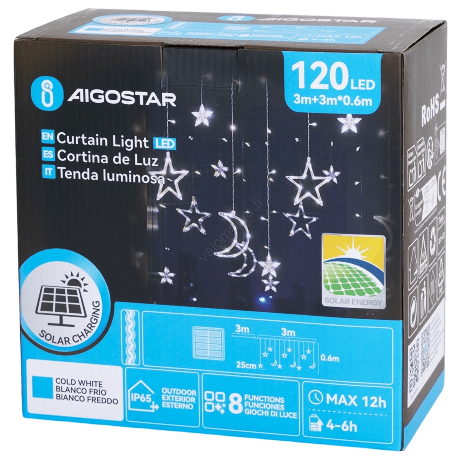 Aigostar - LED-aurinkovalosarja 120xLED/8 toimintoa 3x0,6m 500 mAh IP65 kylmänvalkoinen