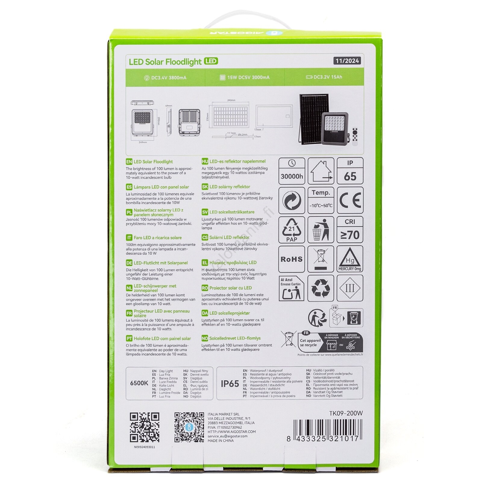 Aigostar - säädettävä LED-aurinkokohdevalo LED/200W/3,4V IP65 + kauko-ohjain | Valomania