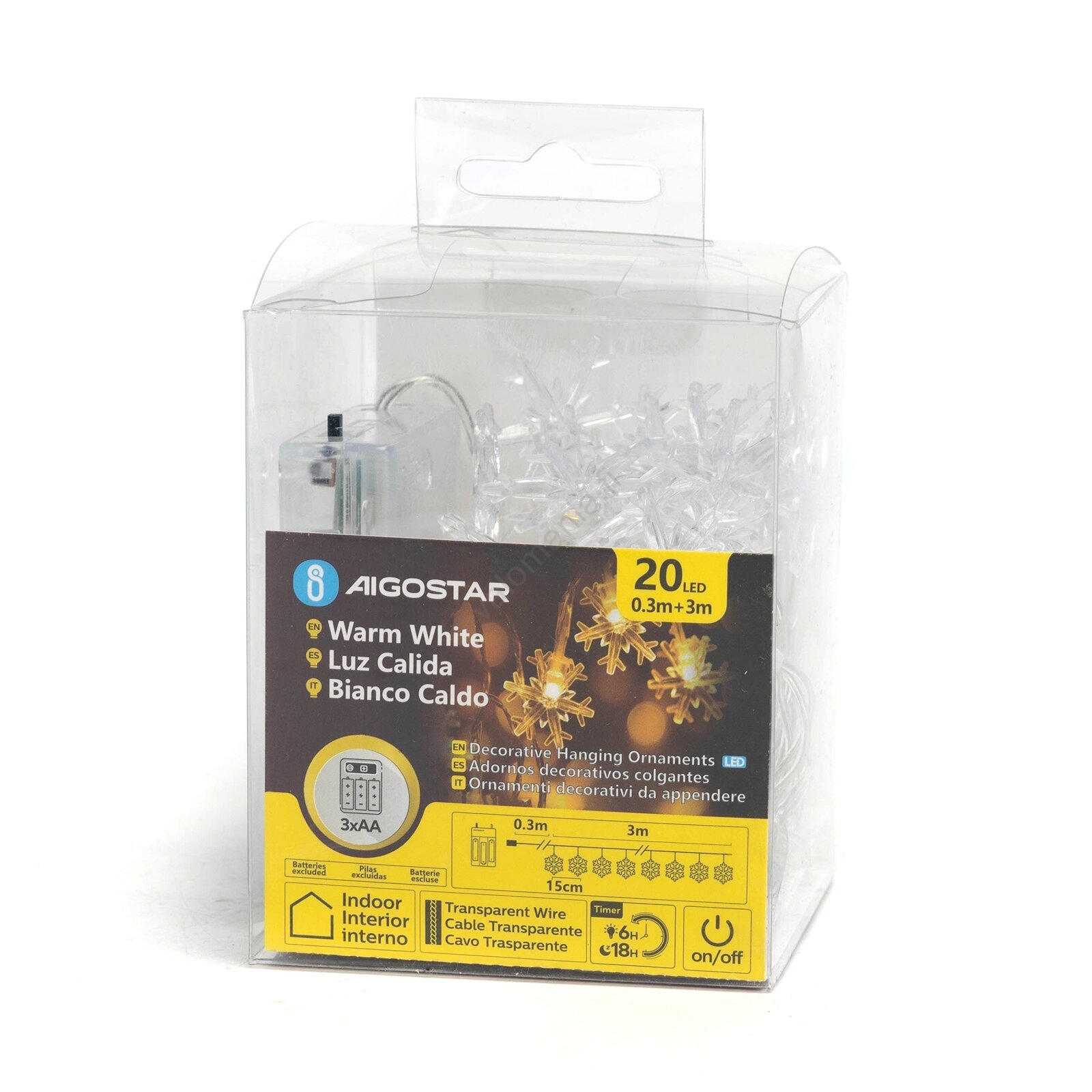 Aigostar LED-joulukoriste 20 LED/3xAA 3,3m lumihiutaleet | Valomania