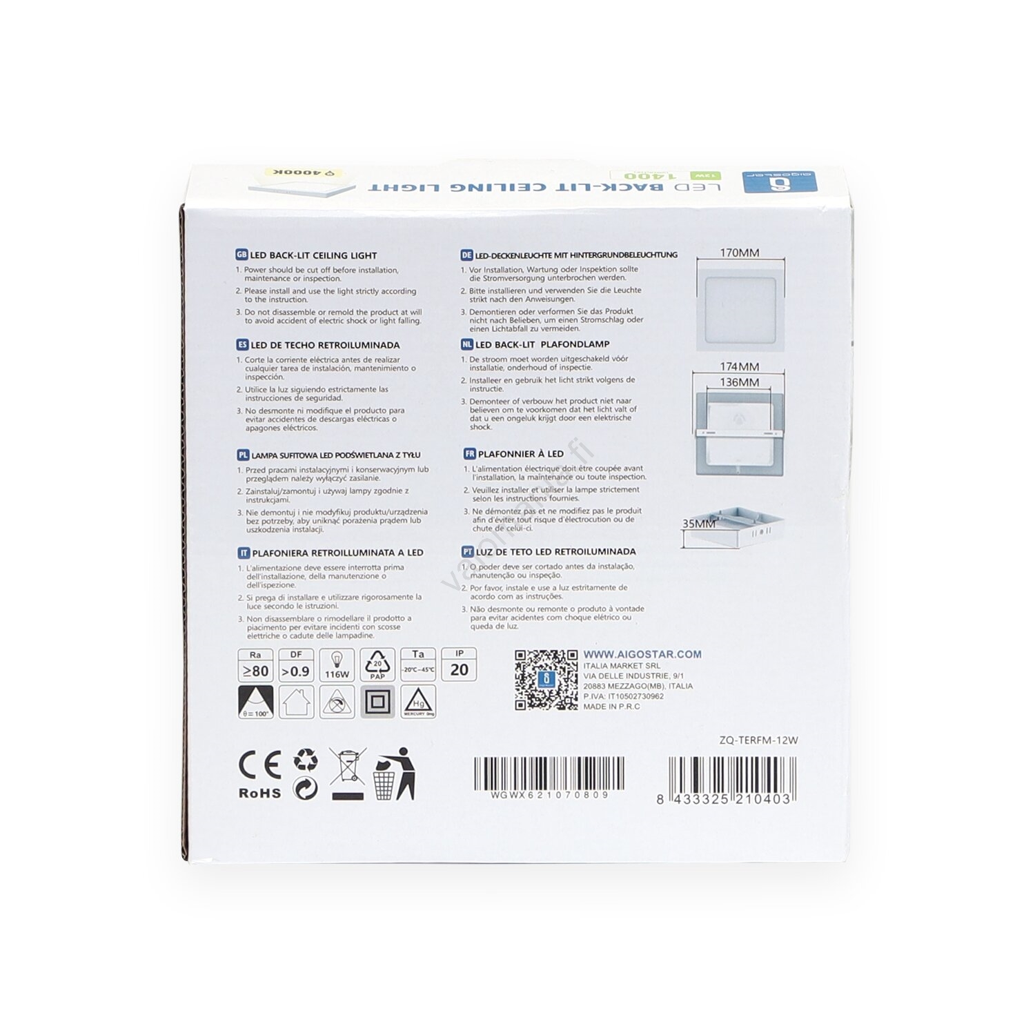 Aigostar - LED Kiinteä kattovalaisin LED/12W/230V 17,3x17,3 cm 4000K valkoinen