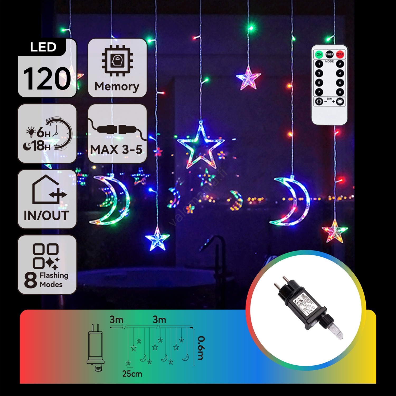 Aigostar - LED RGBY ulkokäyttöön valoketju 120xLED/8 toimintoa 3x0,6m IP44 moniväri + kaukosäädin