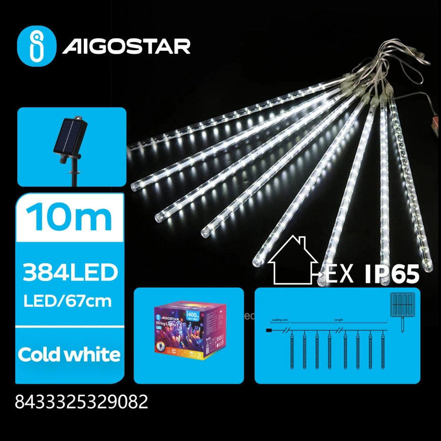 Aigostar - LED-aurinkoketju 384xLED/13m IP65 kylmänvalkoinen | Valomania