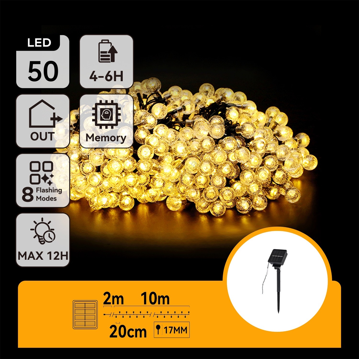Aigostar - LED aurinkoketju 50 LED/8 toim. 12m IP65 lämmin valkoinen | Valomania