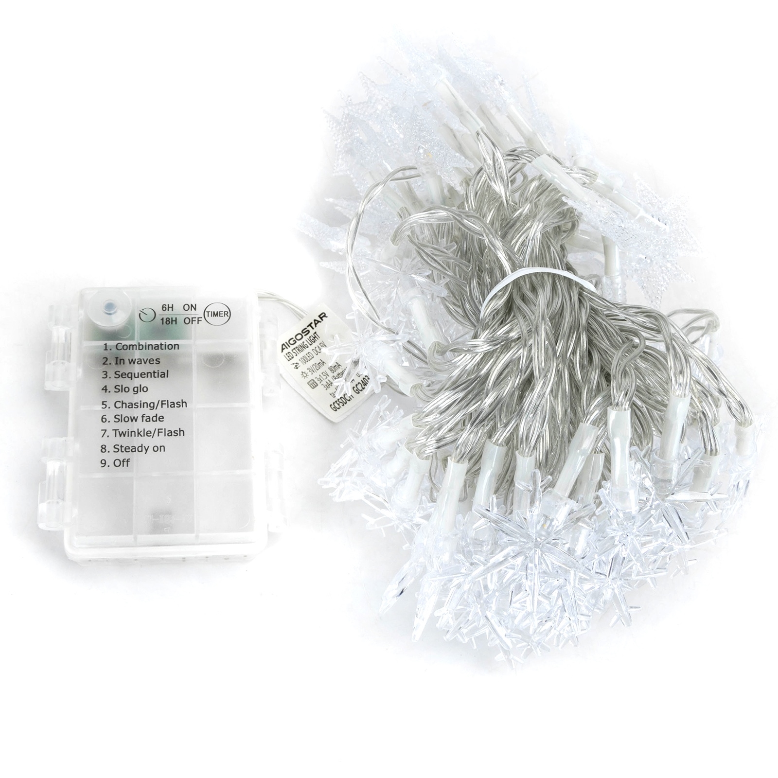 Aigostar - LED-ulkovaloketju 100 LED/8 toimintoa 3xAA 10 m IP44 lämmin valkoinen tähdet | Valomania