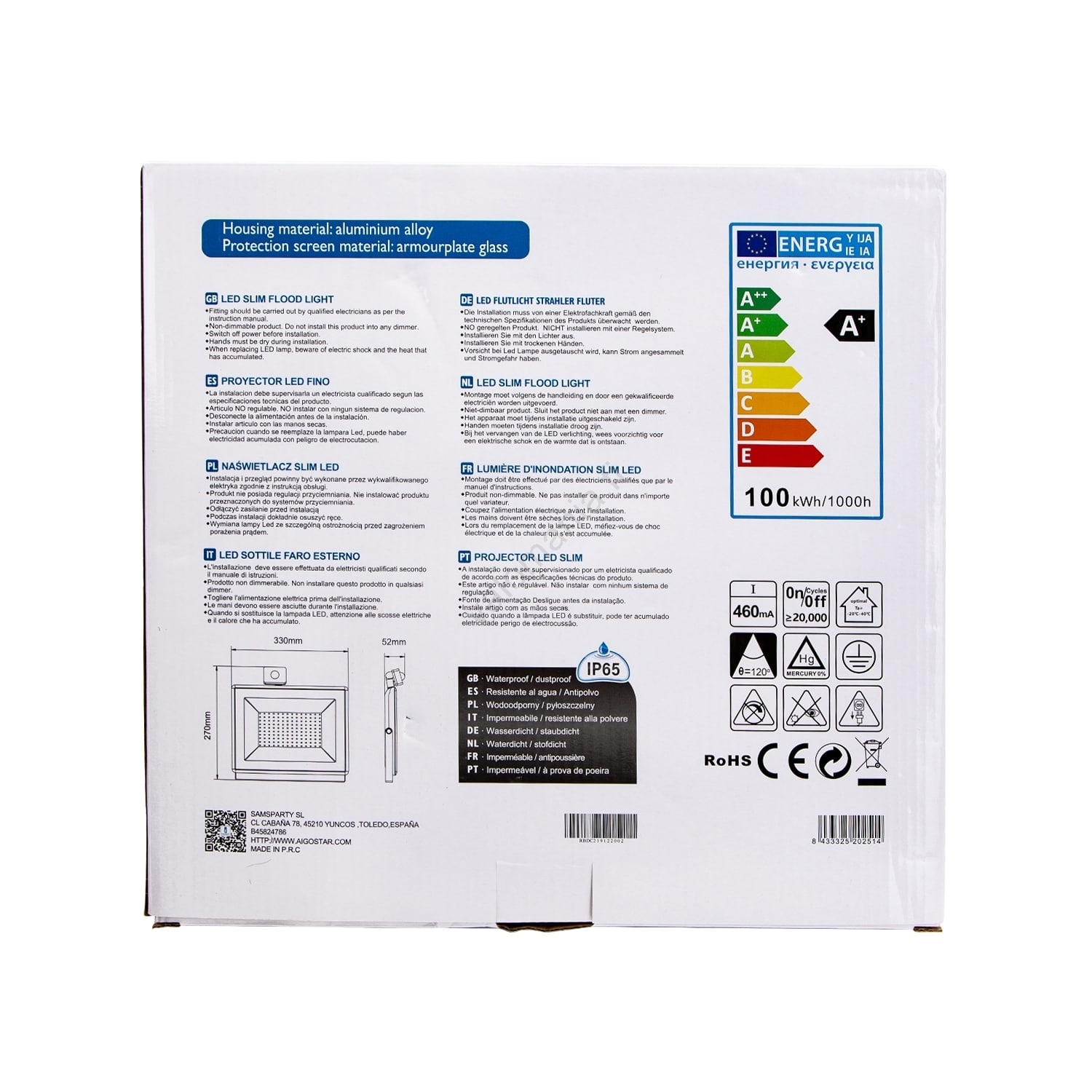 Aigostar - LED-valonheitin anturilla LED/100W/230V 6400K IP65 valkoinen | Valomania