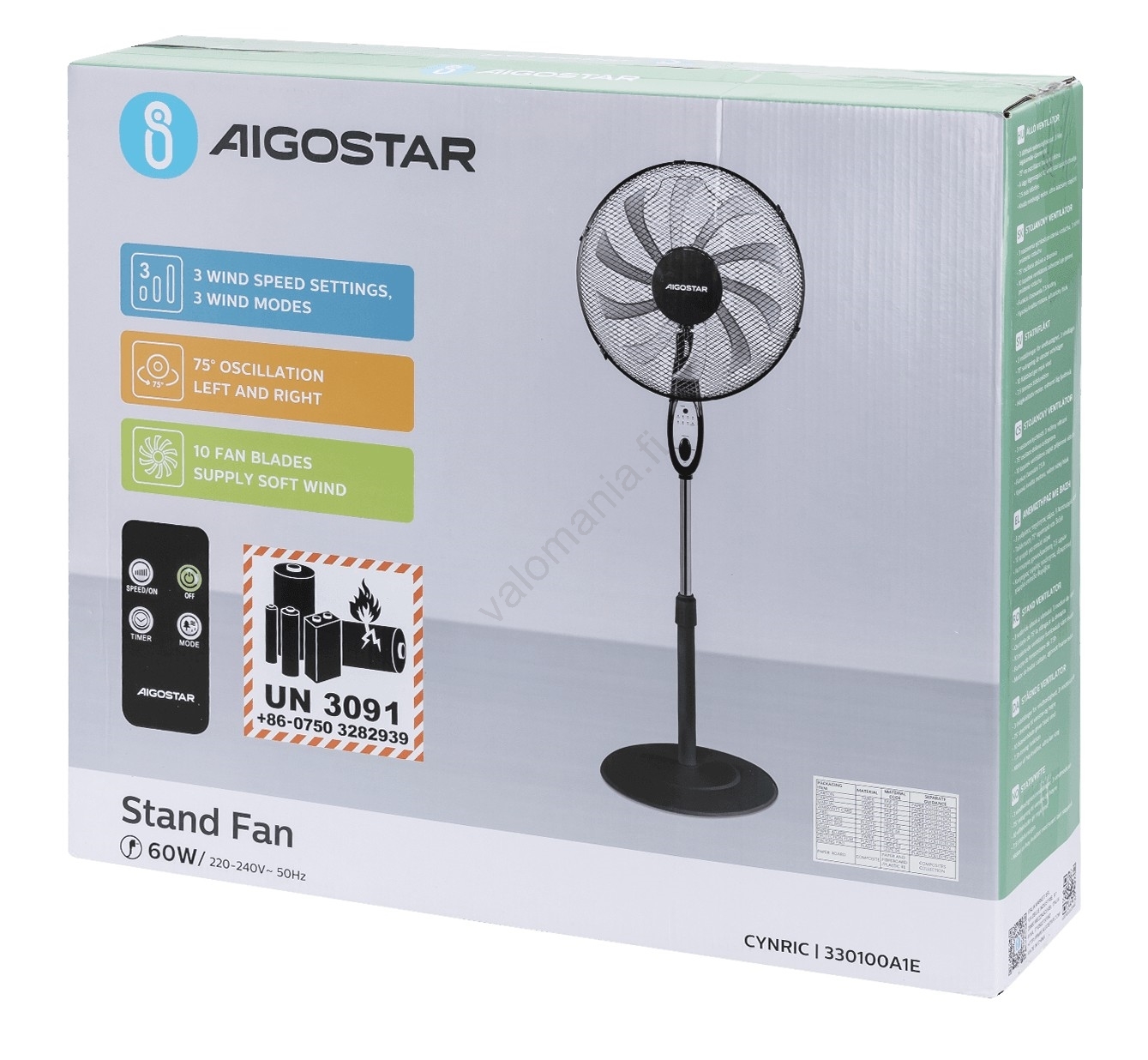 Aigostar - Jalustatuuletin 60W/230V musta + kaukosäädin | Valomania