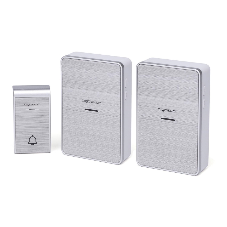 Aigostar - SETTI 2x Langaton ovikello 3xAA IP44 hopea | Valomania