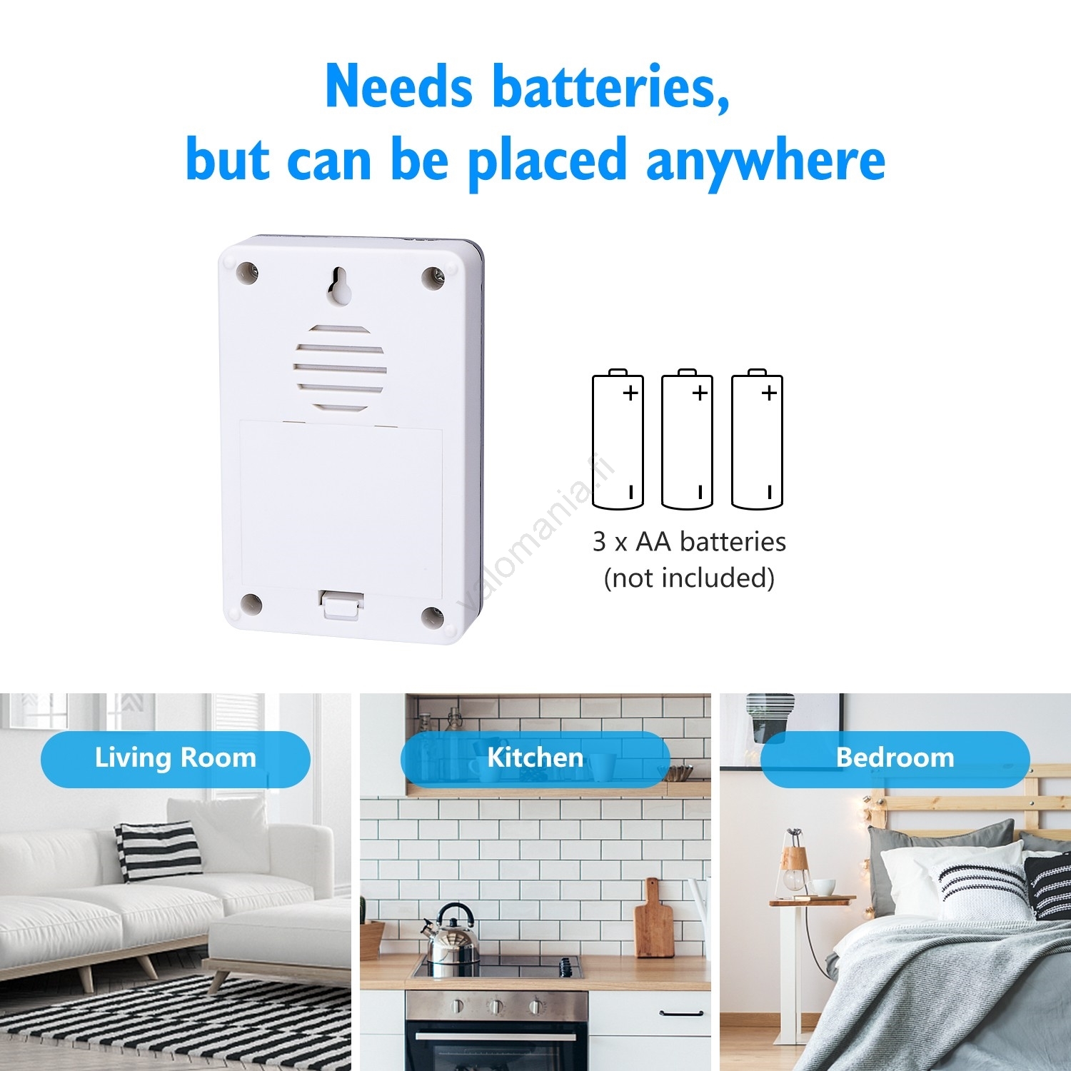 • Kellon virtalähde: 3x AA-paristoa (paristot eivät sisälly pakkaukseen).