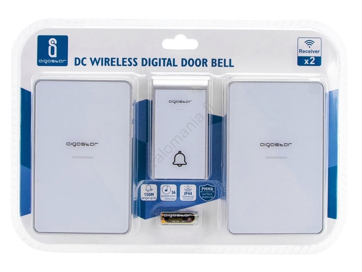 Aigostar - SETTI 2x Langaton ovikello 3xAA IP44 valkoinen | Valomania