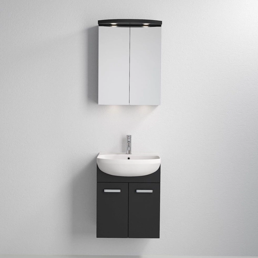Kylpyhuonekaappi pesualtaalla Vang + LED-peilikaappi 230V IP44 musta | Valomania