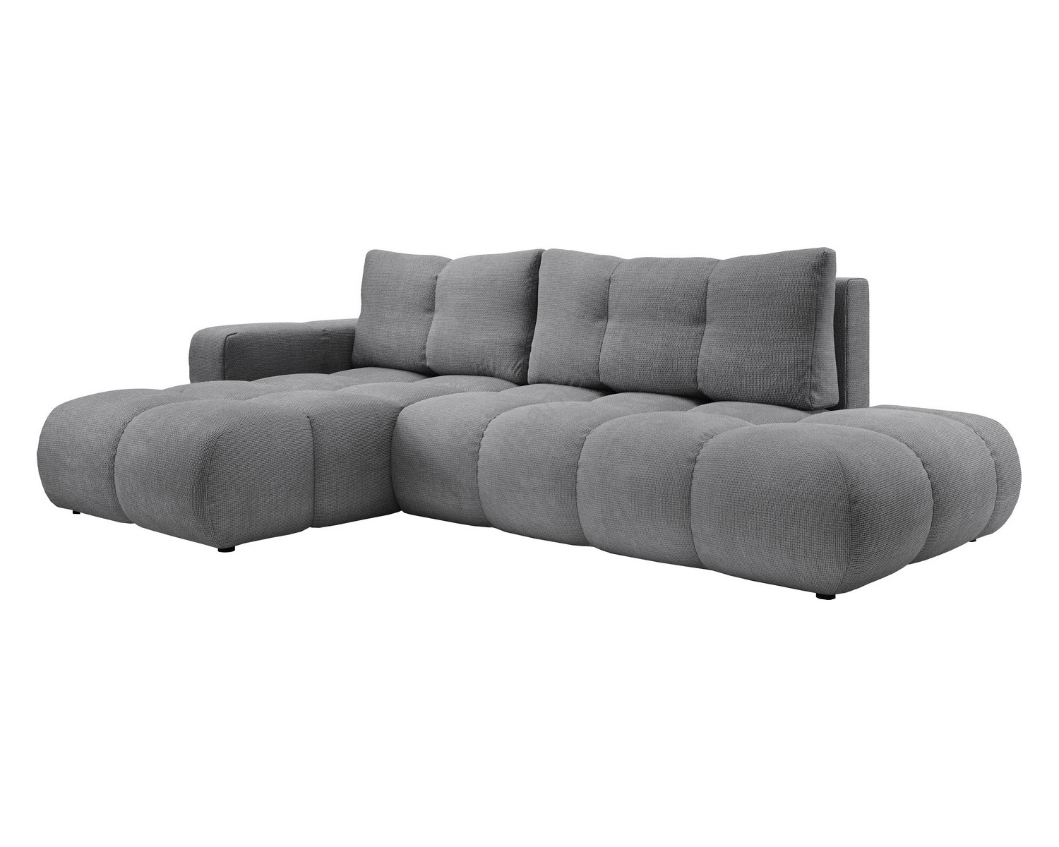 L-mallinen ALMADA verhoiltu kulmasohva, levitettävä vuoteeksi, säilytystilalla, vasen, harmaa