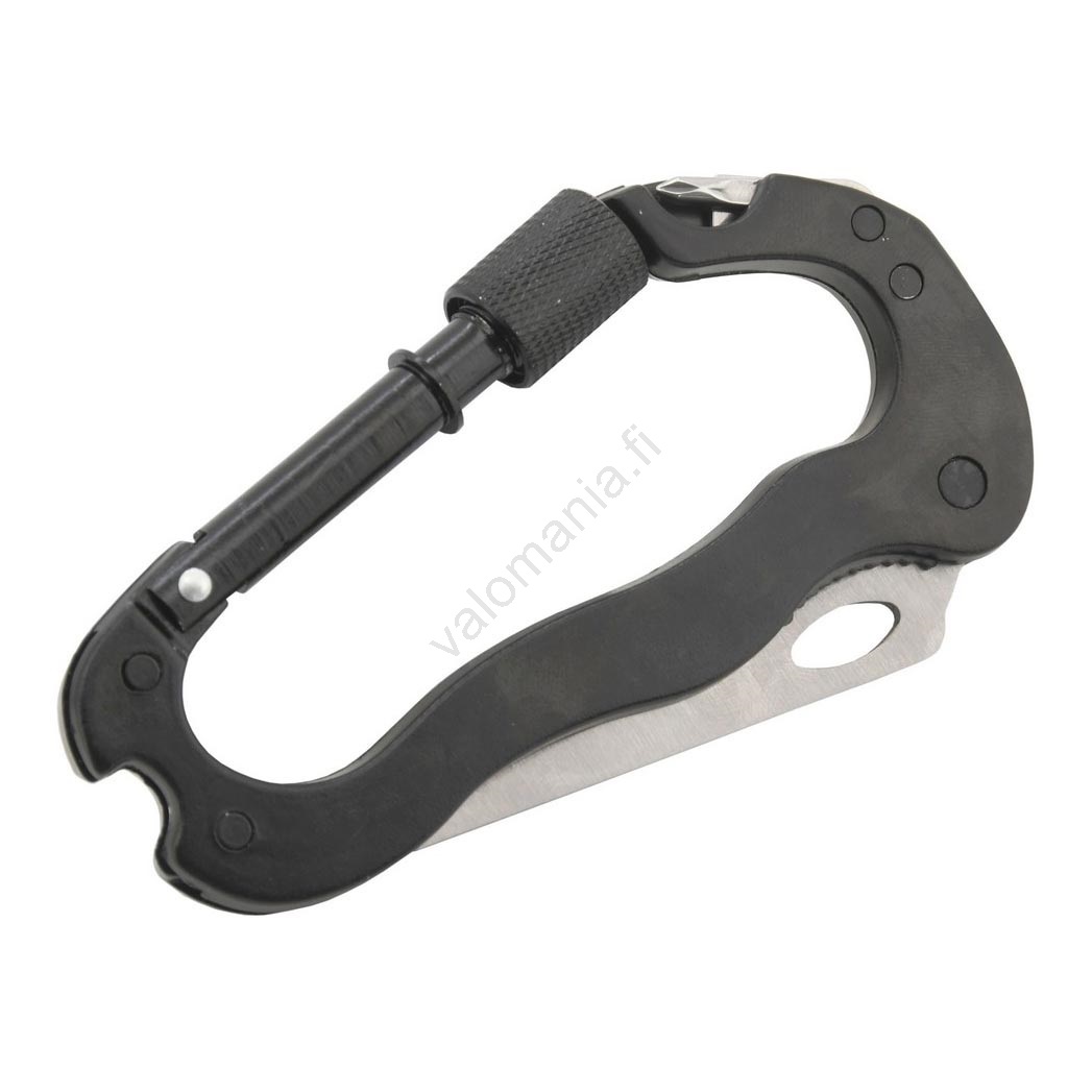 • Alumiininen monitoiminen karabiini, jossa on ruuvimekanismilla varustettu lukitus estämään tahattoman avautumisen.