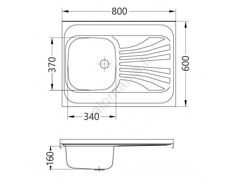 ALVEUS 1095618 - CLASSIC-keittiöallas 80x60 cm, ruostumaton teräs (satiiniviimeistely), reunaton, kä