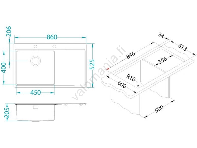 • ALVEUS 1103653 - Keittiön pesuallas PURE 86x52,5 cm satin, oikea