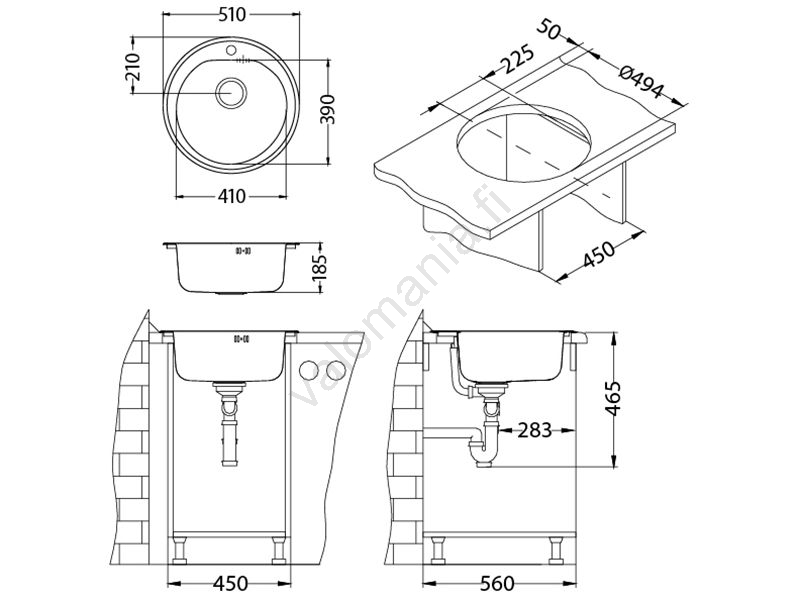 • Pakkauksen sisältö: ruostumaton teräsallas, kiinnikkeet ja tiivisteet, 3 1/2 tuuman sihtiventtiili, hajulukko astianpesukoneen liitännällä.