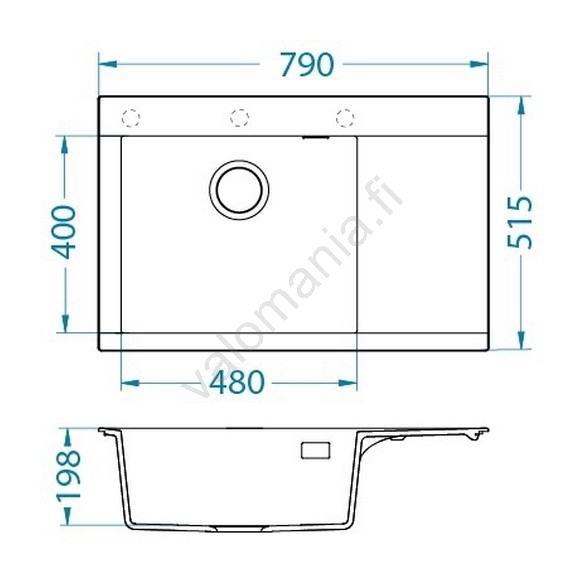 • Pakkauksen sisältö: graniittiallas, kiinnikkeet, sihtiventtiili 3 1/2, sifoni liitännällä astianpesukoneelle.