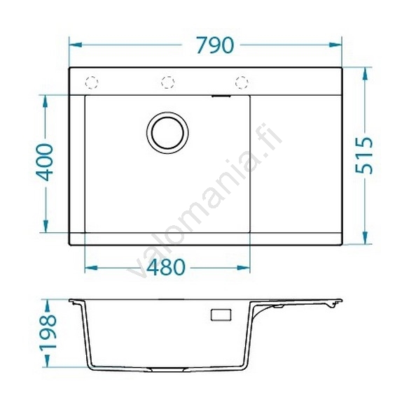 • Pakkauksen sisältö: graniittiallas, kiinnikkeet, sihtiventtiili 3 1/2, viemärisifoni astianpesukoneen liitännällä.