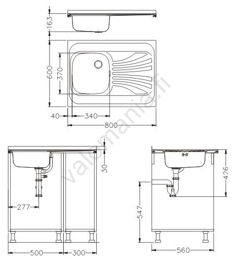 • Pakkauksen sisältö: ruostumaton teräsallas, poistoliitäntä 1 1/2, hajulukko tiskikoneen liitännällä, tulppa, keittiöhana, liitäntäletkut, asennussarja.