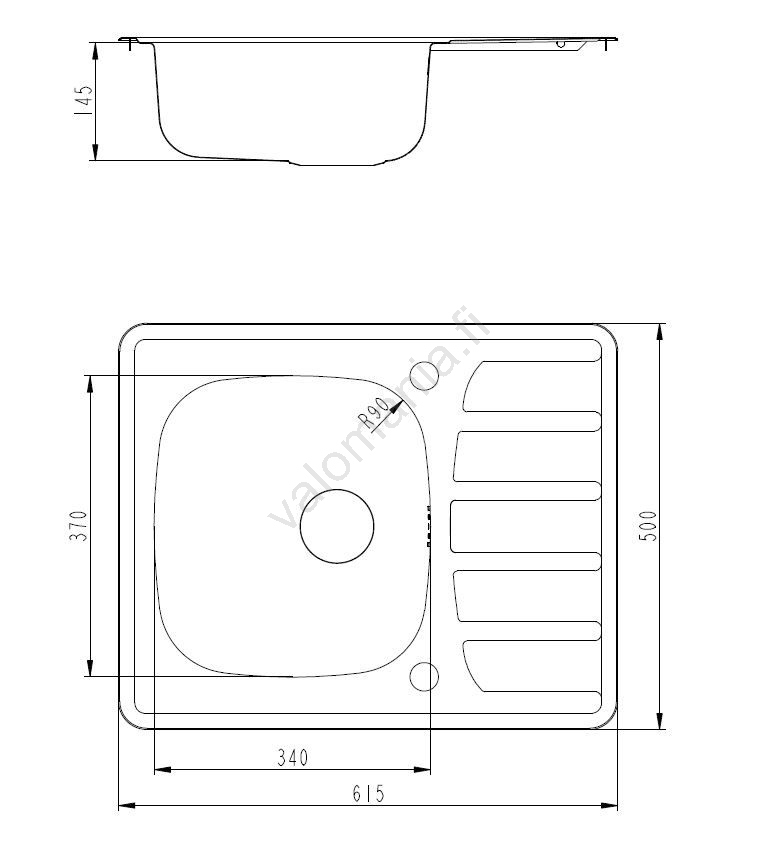 • Ruostumattomasta teräksestä valmistettu keittiöallas klassisella muotoilulla.