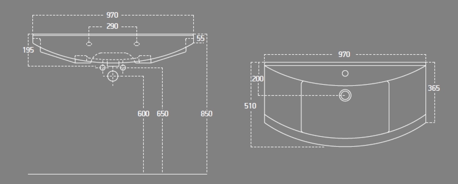 • Sen mitat ovat 970x510 mm ja sen väri on valkoinen.