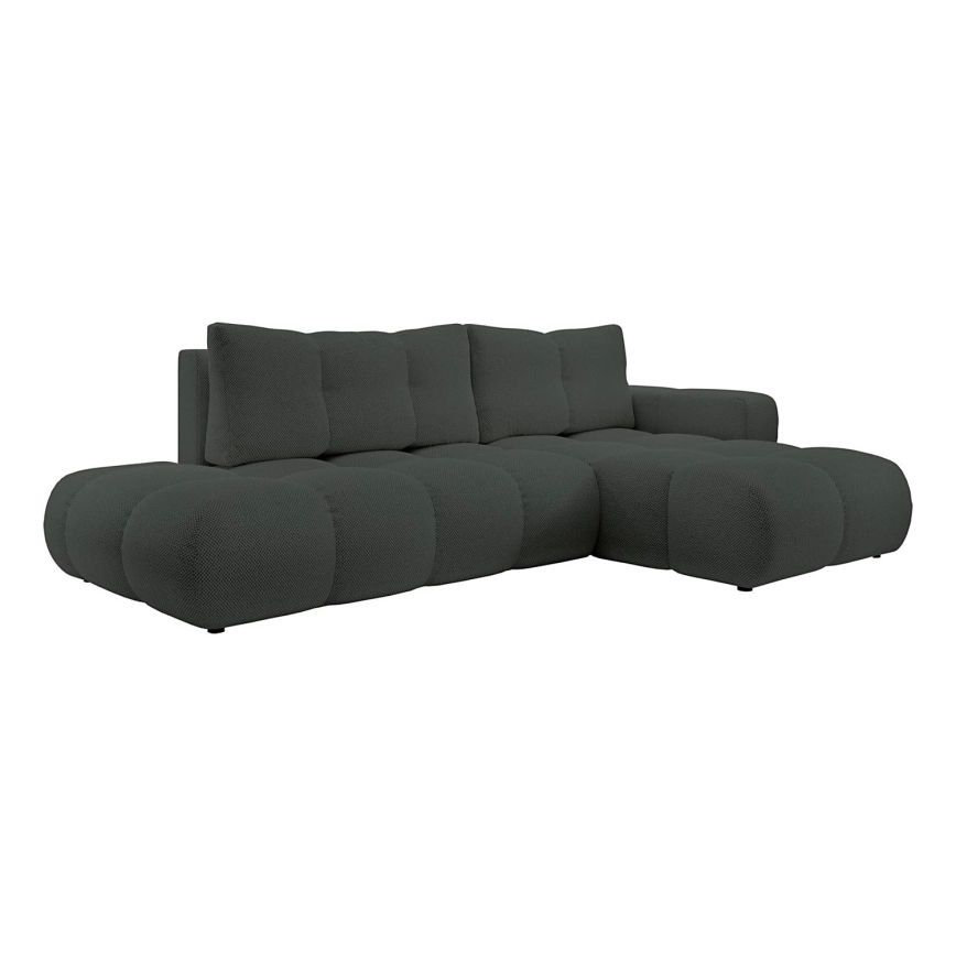 Avattava verhoiltu L-muotoinen kulmasohva ALMADA, oikeanpuoleinen, antrasiitti, säilytystilalla | Va
