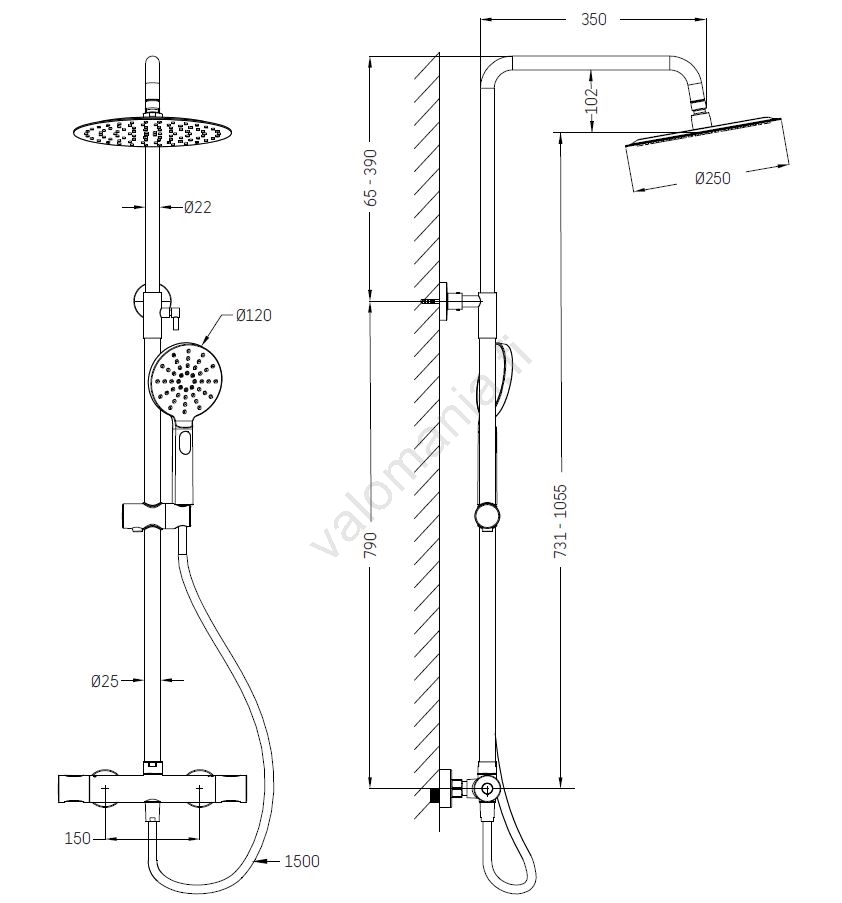 • Setti sisältää massiivisesta messingistä valmistetun termostaattisen suihkuhanan.