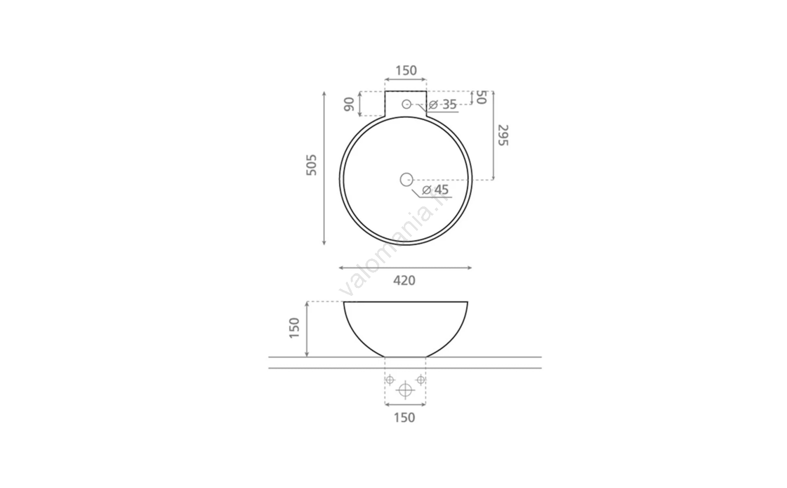 • Moderni ja tyylikäs pesuallas ilman ylivuotoreikää.