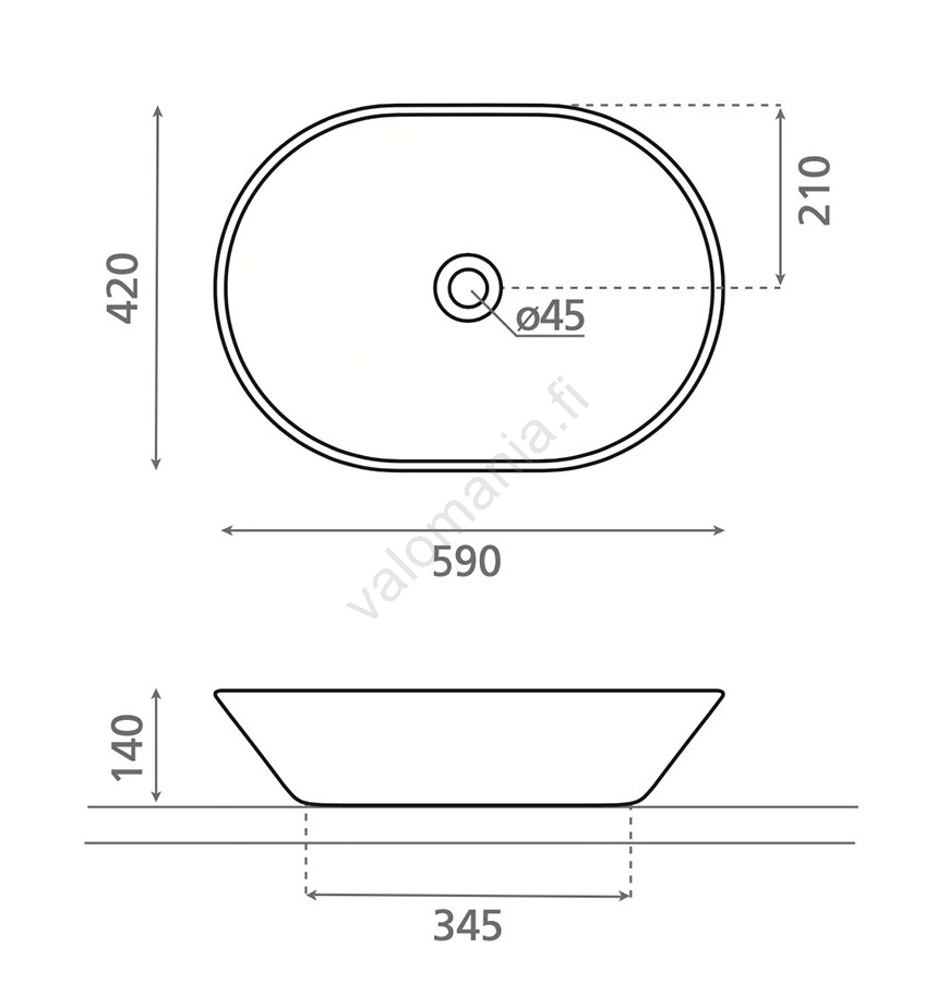 • Pakkaus sisältää pesualtaan ilman sifonia ja hanaa.