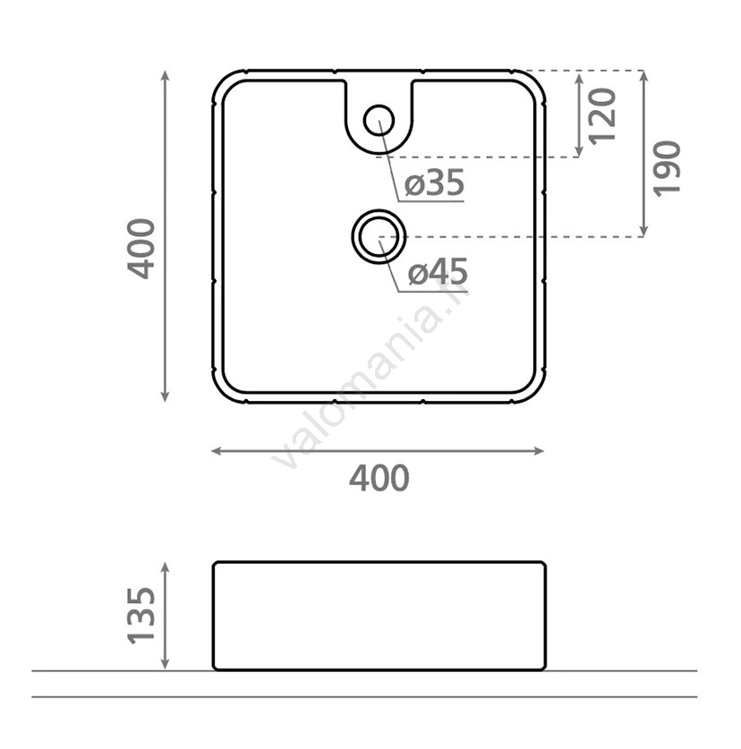 • Moderni ja tyylikäs pesuallas ylivuotolla.
