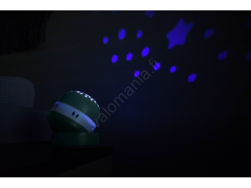 • Beaba Pixie -projektori on suunniteltu muuttamaan lastenhuone rauhoittavaksi avaruudeksi heijastamalla tähtitaivaan seinälle ja kattoon.