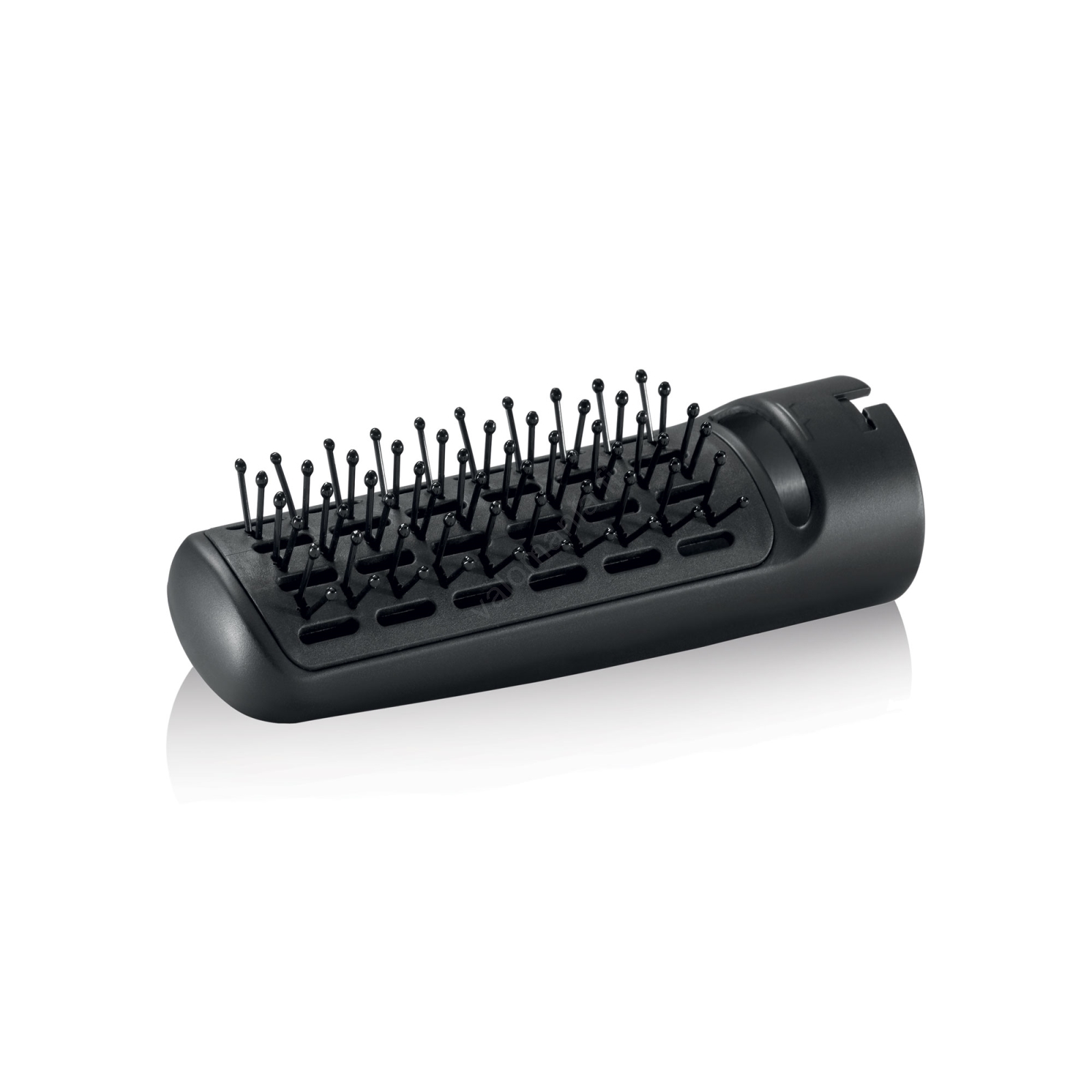 • Pakkaus sisältää 5 vaihtopäätä: pyöreä harja (32 mm), pyöreä harja (50 mm), kiharrin (19 mm), litteä harja ja kuivaussuutin.