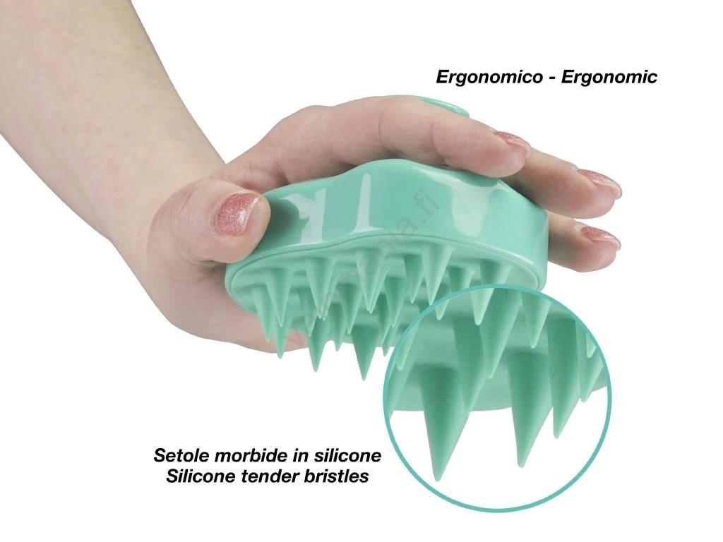 • Silikoniset harjakarvat mukautuvat täydellisesti päänahkaan.