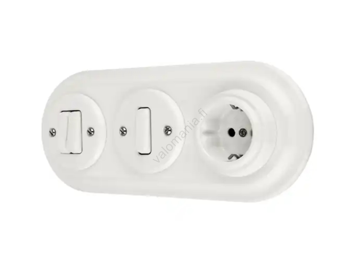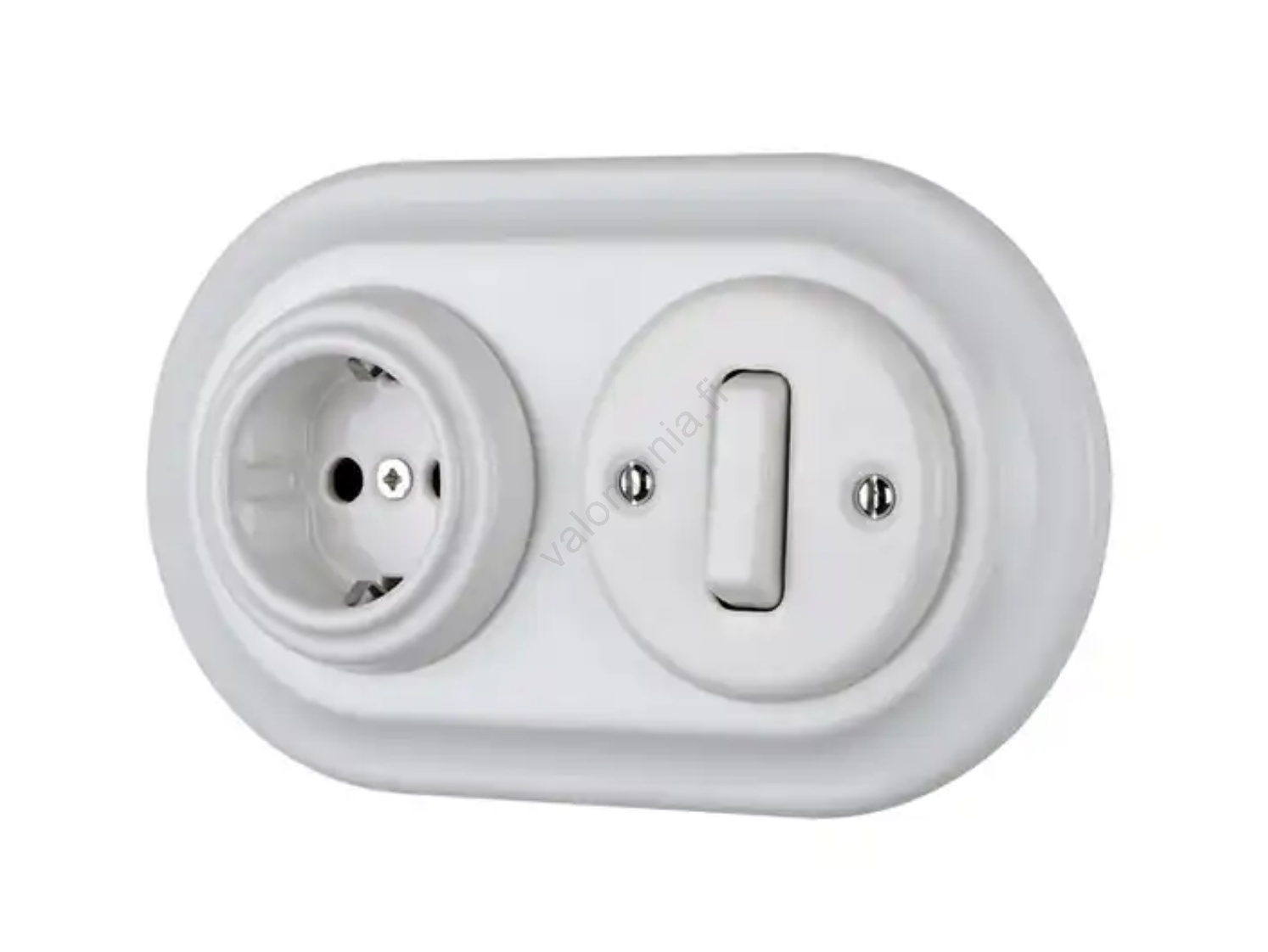 Bohemia-Design - Posliininen retro-pistorasia kotikäyttöön, ilman kehystä, 250 V/16 A, valkoinen | V