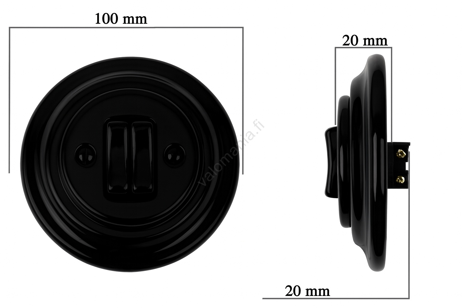 Bohemia-Design - Posliininen retro-kaksoiskytkin, kehys nro 5, musta | Valomania
