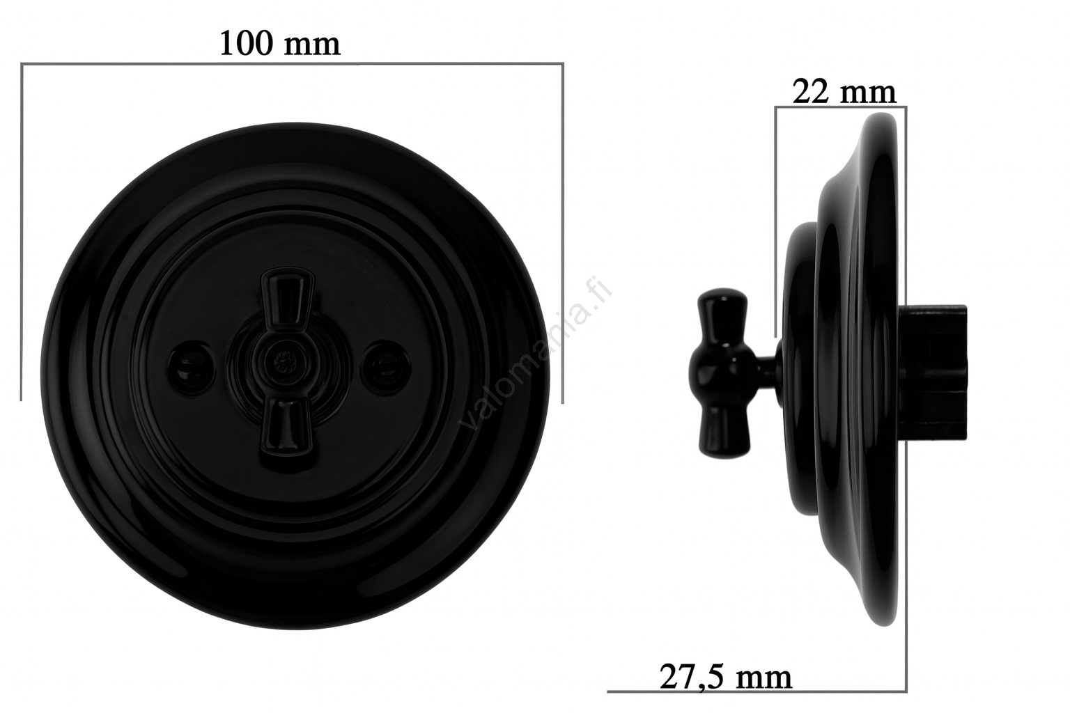 Bohemia-Design - posliininen retro-kiertokytkin, kehys nro 1, musta | Valomania