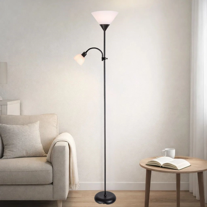 Brilagi - ARIANA lattiavalaisin 1xE27/100W/230V + 1xE14/25W musta merkitsee kaunista ja toimivaa muotoilua.  Valoon sopii polttimo, jossa on E14, E27-kanta. Täältä voit ostaa myös muita lamppuja edulliseen hintaan. Mielenkiintoinen lisä kotiisi.