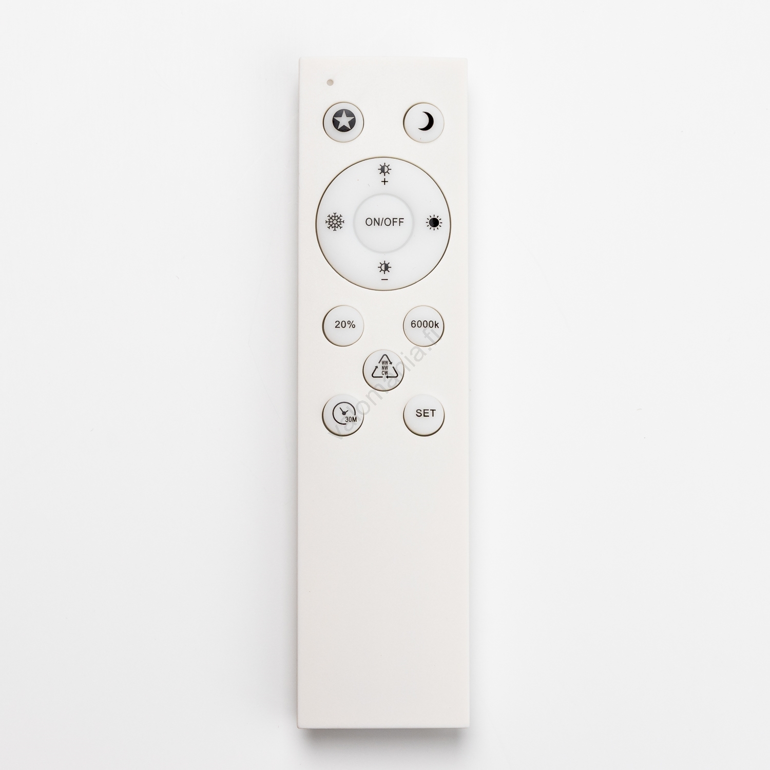 Kaukosäätimen ulkonäkö ja toiminnot voivat vaihdella valaisinerän mukaan, sillä valmistaja pyrkii jatkuvasti uudistamaan niitä.