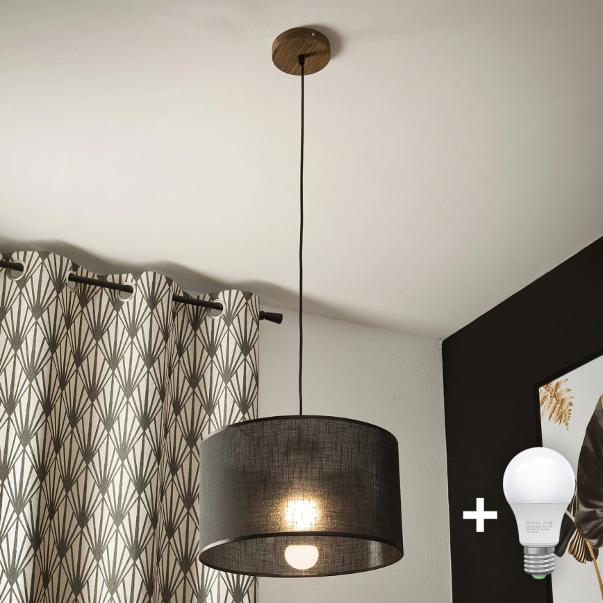 • Brilagi - LED Ripustettava kattovalaisin ANTHONY 1xE27/60W/230V tammi-pähkinä/musta
