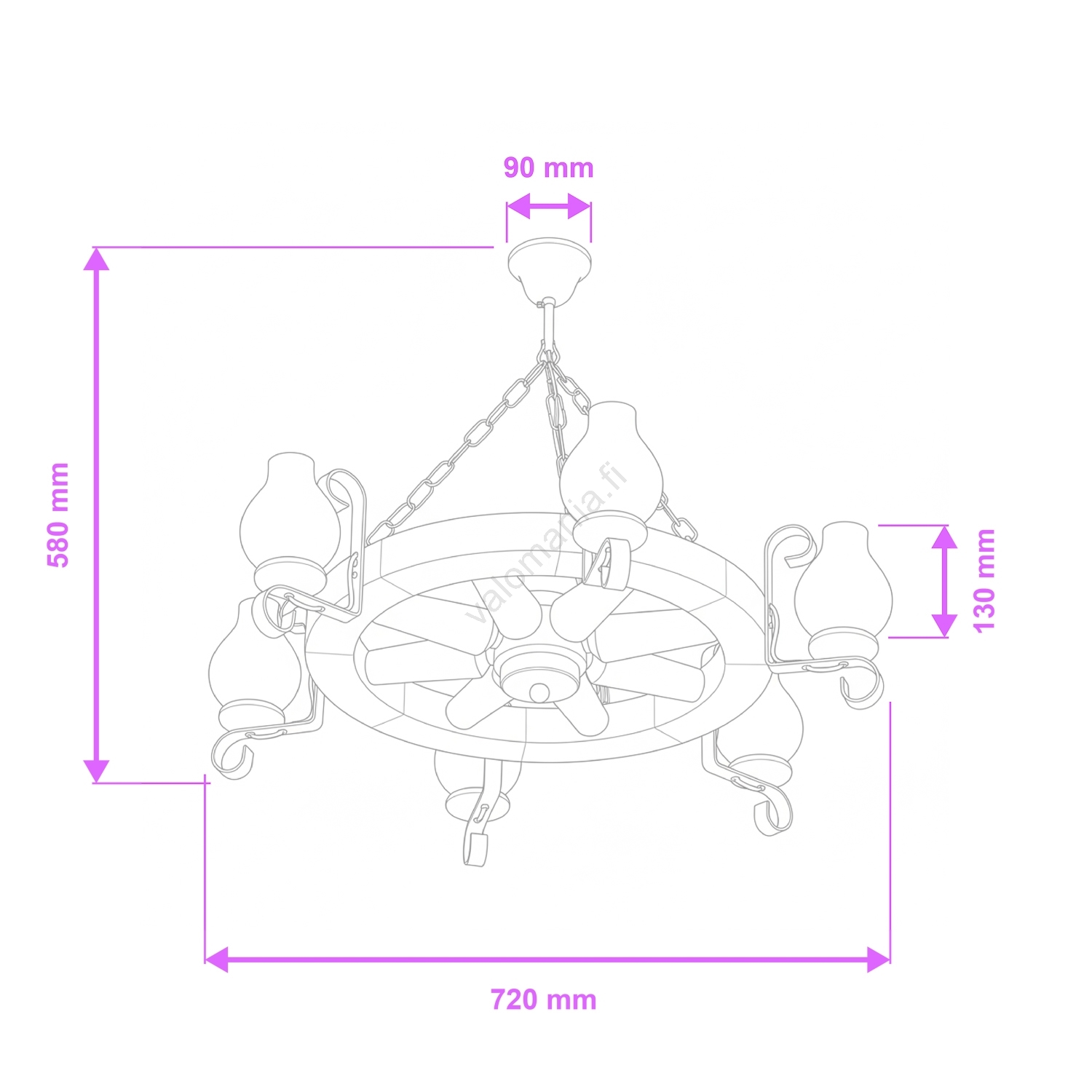 • Brilagi - ROATA-riippuvalaisin ketjulla, 6xE14/40W/230V, halkaisija 70 cm, pyökki